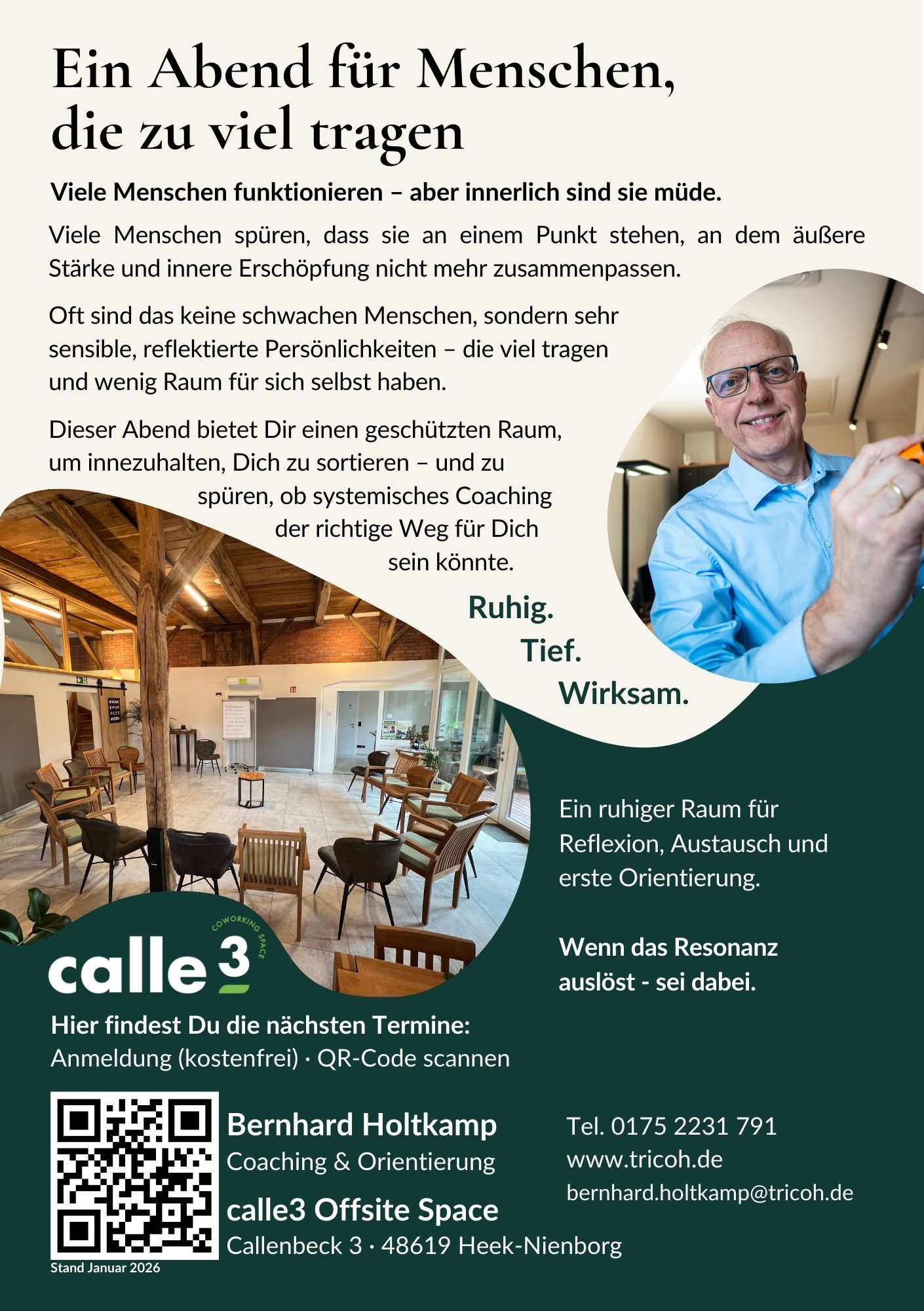 Das Coaching findet im calle3 Offsite Space statt – einem naturverbundenen Raum im Münsterland.